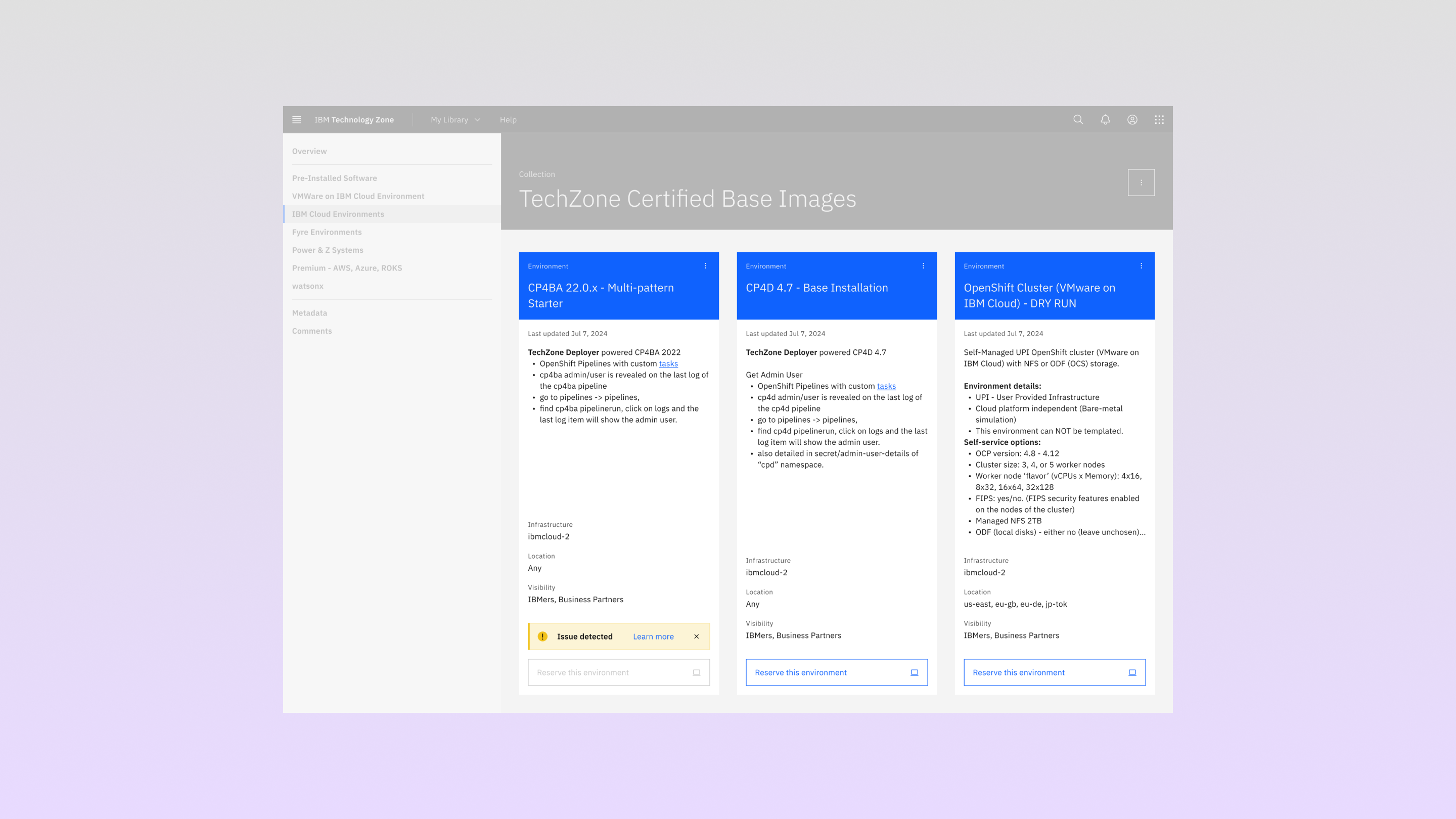 IBM Technology Zone (TechZone) is a sales tool for GTM teams and business partners to create technical environments, PoTs, prototypes, and more. While built with Carbon Design System, inconsistent component usage led to technical debt and a frustrating user experience.